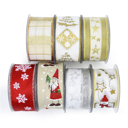 2PCs Christmas Packing Materials Yarn-Dyed Jacquard 4cm Wide Christmas Meshbelt