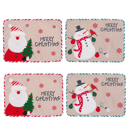 2PCs Christmas Tablecloths Embroidery Old Man Snowman Placemat