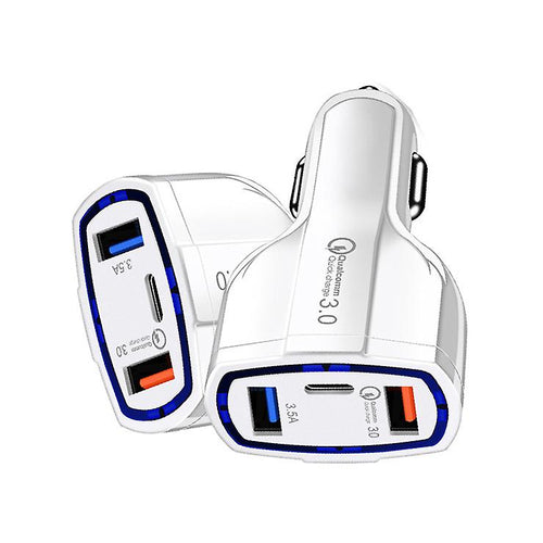2Pcs white Quick Car Charger With 2 USB Ports and Type-C Port AZ12191