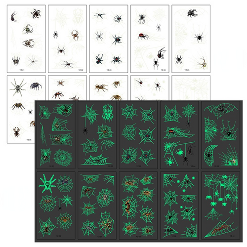 10PCs Halloween Luminous Spider Tattoo Sticker for Kids Adult