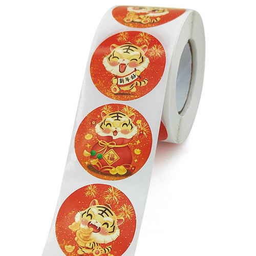 2x500pcs Christmas Xmas New Year Tiger Fu Character Candy Gift Decorative Sticker Label tape