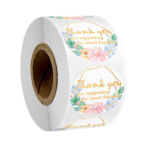 2x500pcs Xmas Christmas Stickers Roll Label -up Gilding Thank You Business Gift Flower Sealed