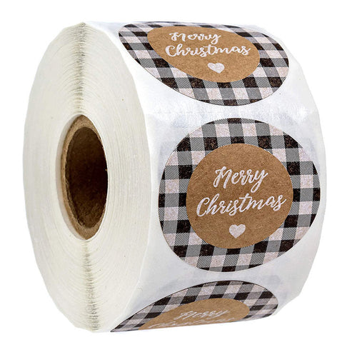 2x500pcs Xmas Christmas Stickers Roll Label Black and White Plaid Merry Gift