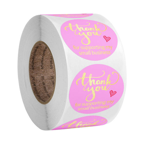 2x500pcs Xmas Christmas Stickers Roll Label Pink and Bronze Thank You Thank You Crafts Wedding Sealed Tags