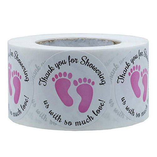 2x500pcs Xmas Christmas Stickers Roll Label Red Blue Baby Feet Thank You Showering Love