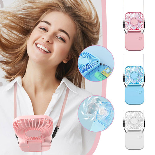 3-in-1 Fan Hanging Neck Foldable Small Electric Fan Outdoor Handheld Sports 3-speed Portable Mi P9X7
