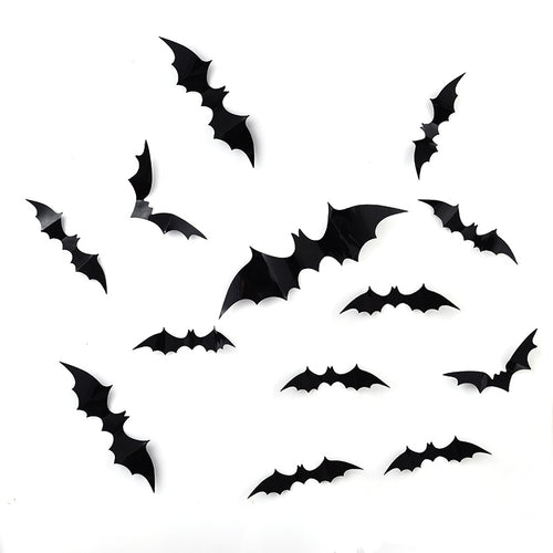 12/56/68PCs Halloween Bat 3D Black Large Bat Spider Wall Sticker