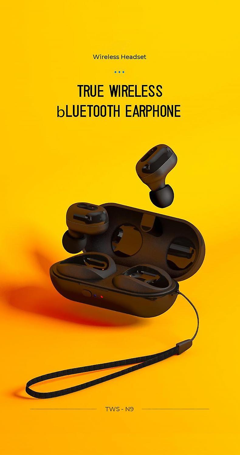 N9 TWS bluetooth Wireless Stereo Hifi In-ear Earphone Handsfree Gaming Headset With ChargingDescription: Model: N9 bluetooth version: 5.0 Transmission distance: outdoor straight-line distance 10-15m Battery capacity: polymer lithium battery 45mah / 300mAh Charging voltage: 5V Listening time: about 3 hours Talk time: 4 hours Standby time: 150 hours Charging time: about 1 hour Package specification: 35 * 90 * 120mm Weight: 78g (including package) Specifications: TWS bluetooth 5.0 earbuds with charging case, convenient to use. Portable carry case, with small size, easy take and charge your earbuds in your pocket. Built-in powerful bluetooth 5.0 chip, power-on automatic pairing, fast pairing and stable connection, compatible with smartphone, tablet and laptop. Ergonomic design, the shape of the bluetooth earphones are strictly designed according to human ear form, comfort is guaranteed. High performance battery provides long playing time and long standby time. Package Included: 2* headphones 2* ear hat 1* charging bin 1* charging line 1* instructions 1* Lanyard