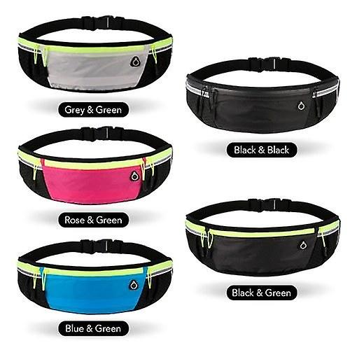 The running belt bag is made of ultralight and breathable material,which is water-repellent,keeps your phones,cards and other item inside from getting wet with sweat.You won't feel anything when you wear this Features: Water-repellent chinlon fabric for outer and breathable mesh back,ultra-light and durable. 3 separated zipper pockets for easy access and good organization,you can carry 6.5" mobile phones,keys,cash,cards and other items. Earphone jack for freely enjoying music while running. Reflective strips are designed to ensure safety and visibility at night. Adjustable elastic belt can easily adjust from 31.5inches (80cm) to 43.3inches (110cm). Ideal for running,walking,hiking,mountain climbing,cycling,biking,fishing,camping,shopping,traveling and other outdoor sports. Specification: Color: Black & Green / Rose & Green / Blue & Green / Beige & Green / Black & Black (optional) Outer material: 100% Chinlon Inner material: 100% Polyester Size: 50 * 11 cm / 19.7 * 4.3 in Weight: Approx. 91 g / 3.2 oz Package List: 1* Running Belt Bag NOTE: 1.Please allow 1-3cm slight measuring deviation due to manual measurement. 2.Item color displayed in photos may be showing slightly different on your computer monitor since monitors. Thank for your understanding.