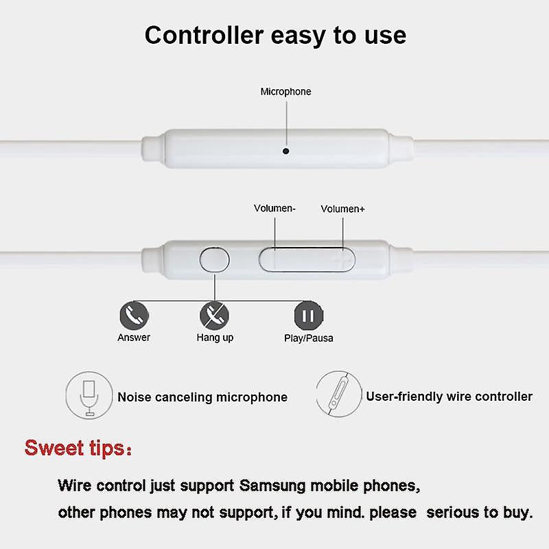 Specifications: Style: Earbuds Vocalism Principle: Hybrid Technology Control Button: Yes Active Noise-Cancellation: No Communication: Wired Volume Control: Yes Sensitivity: 94dBdB Wireless Type: None Is Wireless: No Line Length: 1.2mm Support APP: No Function: For Mobile Phone Function: for Video Game Function: Common Headphone Plug Type: Line Type Connectors: 3.5mm Model Number: Samsung EO-EG920 Support Memory Card: No Resistance: 10 Waterproof: No With Microphone: Yes .