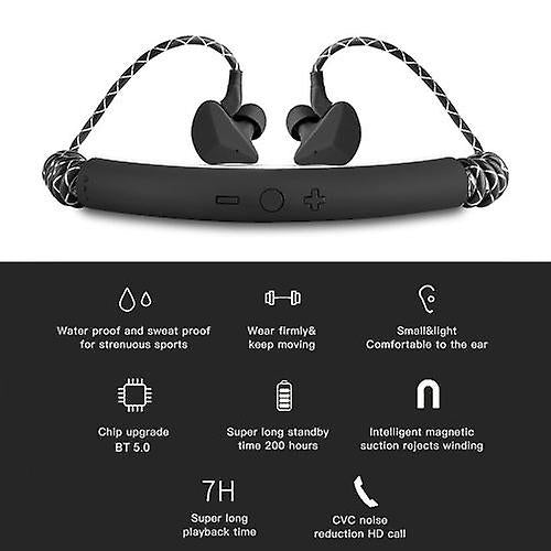 The headset is neck mounted design, telescopic band, magnetic suction, suitable for sport wearing. It is fast pairing, stereo sound quality, comfortable to wear to enjoy music. Features: 45 degrees inclined in ear, 60 degrees shark fine ear support, soft and comfortable wear feeling. Neck hanging wearable design, magnetic suction, not easy to fall off. Fast pairing, 10m barrier free transmission. BT 5.0 chip, bring stereo sound quality and reduce function loss. Switch volume control and USB charge on the neck band, convenient to operate. Built-in cell, long standby time 200 hours after fully charged. Waterproof and sweatproof, suitable for running and other exercise sport.