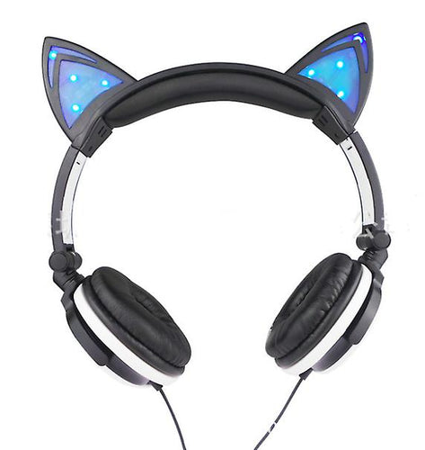 black Children's Cat Ears Head-mounted Luminous Foldable Mobile Phone Music Headset AZ13609