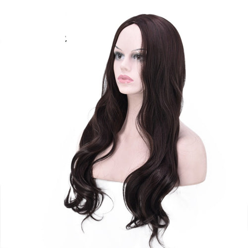 Women Wig Big Wave Dark Brown Medium Long Curly Hair Head Cover W223