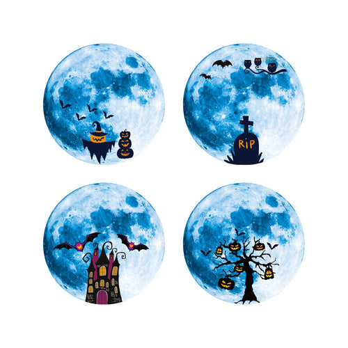 2PCs Halloween Wall Glass Decoration Blue Moon Glow Sticker