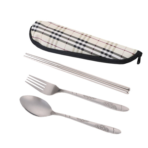 304 Stainless Steel Flatware Sets 2/3pcs Student Household Portable Chopsticks Spoon Kit