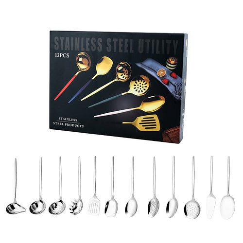 304 Stainless Steel Flatware Sets 12PCs Set Buffet Spoon Colander Shovel