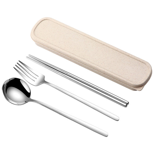 304 Stainless Steel Flatware Sets 3PCs Travel Student Portable Tableware Lunch Box Fork Spoon and Chopsticks