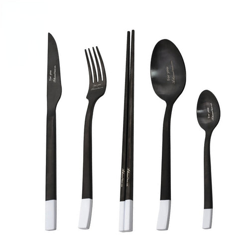 304 Stainless Steel Flatware Sets 4/5Pcs Black and White Stitching Western Tableware Knife, Fork and Spoon