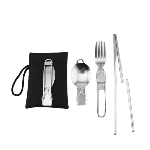 304 Stainless Steel Flatware Sets 3 Pcs/set Outdoor Camping Picnic Tableware Folding Knife, Fork and Spoon Chopsticks