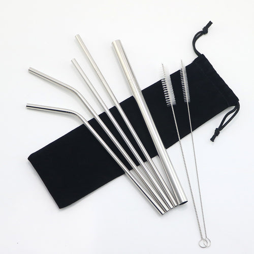 304 Stainless Steel Flatware Sets 4/7PCs Reusable Silver Milk Tea Straw