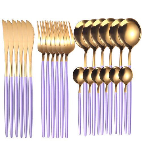 304 Stainless Steel Flatware Sets Western Food/Steak Knife, Fork and Spoon 24Pcs Gold Purple Color
