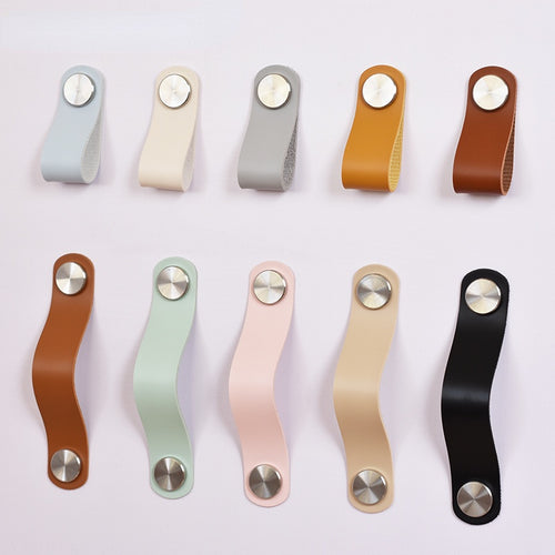 32 Colors Artificial Leather Nordic Kitchen Handles Door Pulls Gold Wardrobe Cupboard Drawer