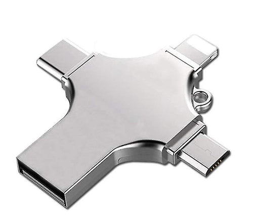 16GB silver 4 in 1 USB Flash Drive Compatible With iPhone, Micro USB & Type C Devices AZ21776