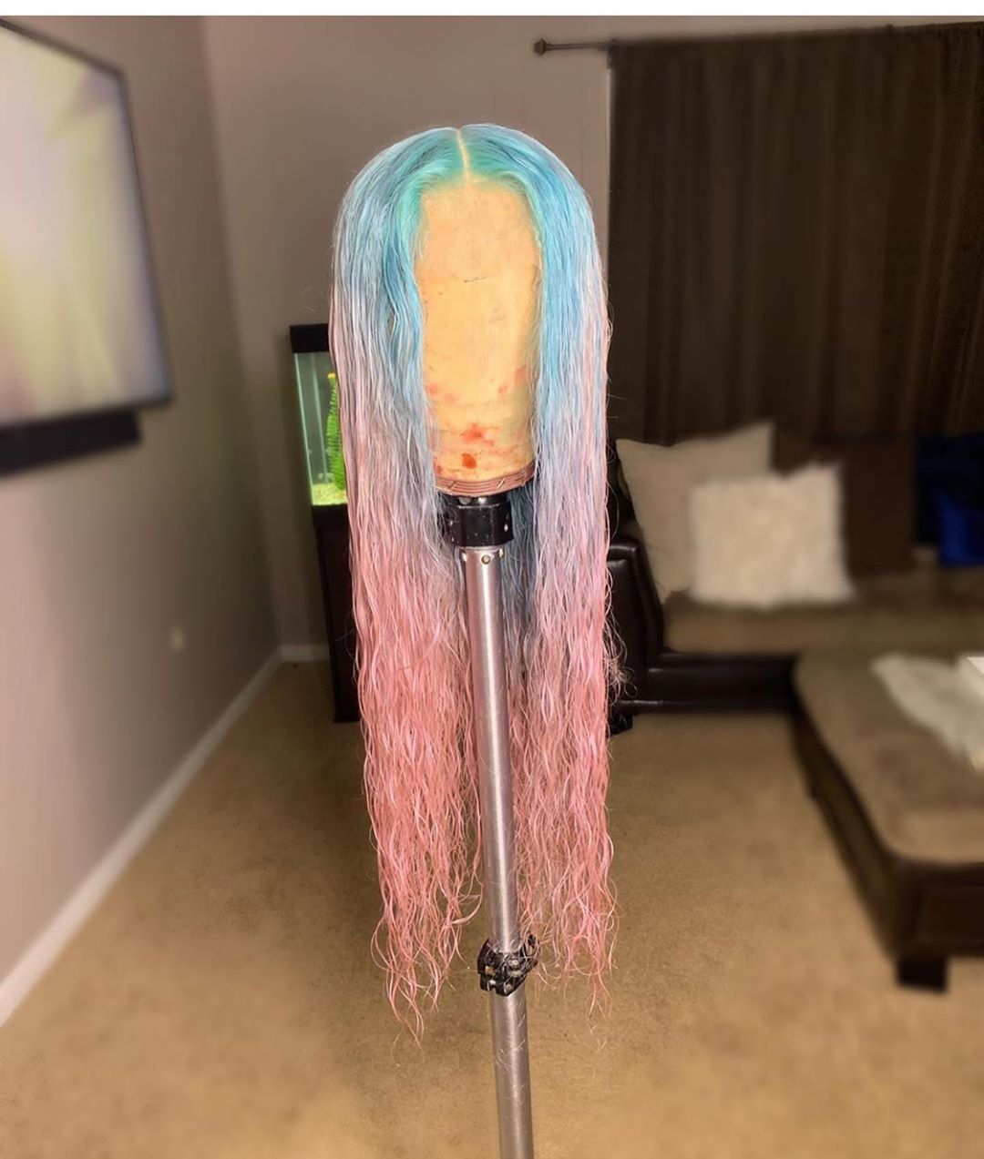 • Lade das Bild in den Galerie-Viewer, Women Wig Long Curly Blue Pink Big Wave Fluffy Curling Iron Set W481