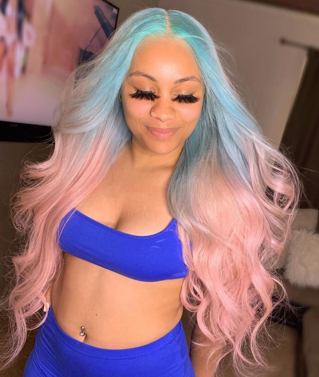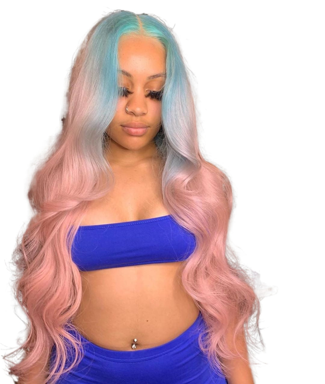 Women Wig Long Curly Blue Pink Big Wave Fluffy Curling Iron Set W481