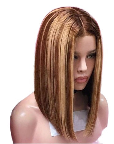 Women wig Gold Short Straight Hair Gradient Pick Color Medium W489
