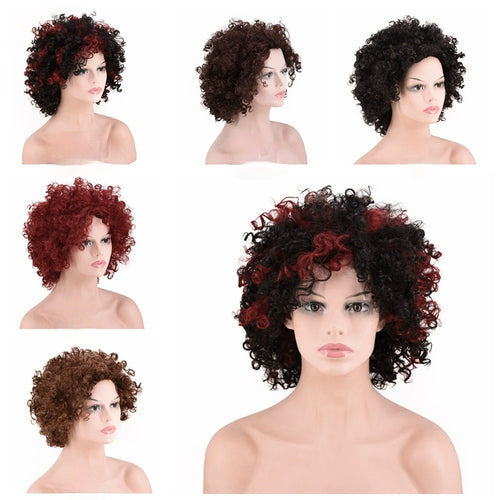 Women Wig African Small Curly Hair Afro Short Fiber Synthetic Wigs W512