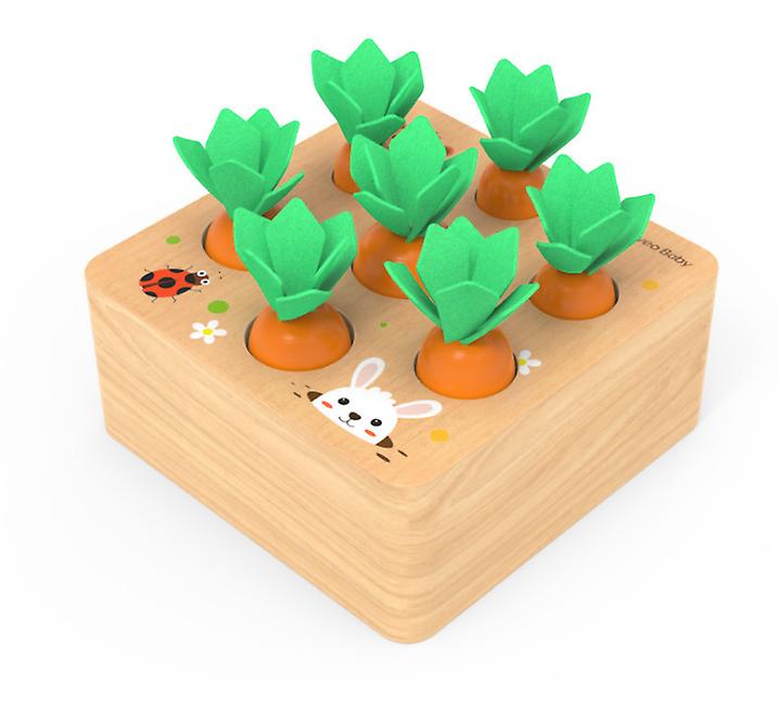 Safety material: Made of New Zealand natural pine wood with water-based paint. Non-toxic, smooth surface. 100% safe for your baby.Sorting game: Your baby needs to recognize the size of carrots to put them back into the slot.Features: While playing with this wooden toy, your child is also developing fine motor skills, hand-eye coordination, shape recognition and agility.Cultivate your baby's sense of music, numbers, hand-eye coordination, color recognition, etc.Great gift: The best choice for birthday gifts for preschoolers. The cute design will always attract the attention of babies.Base size: 12.5*12.5*5.5cm