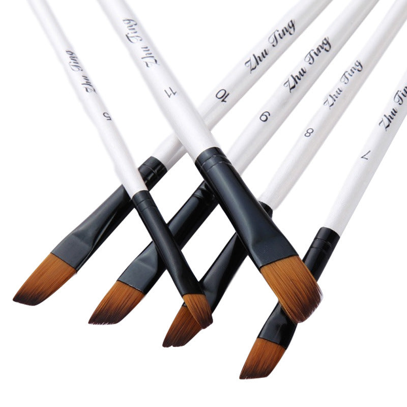 12 pcs White Brush Penholder Oblique Front Nylon Hair Brush Art Painting
