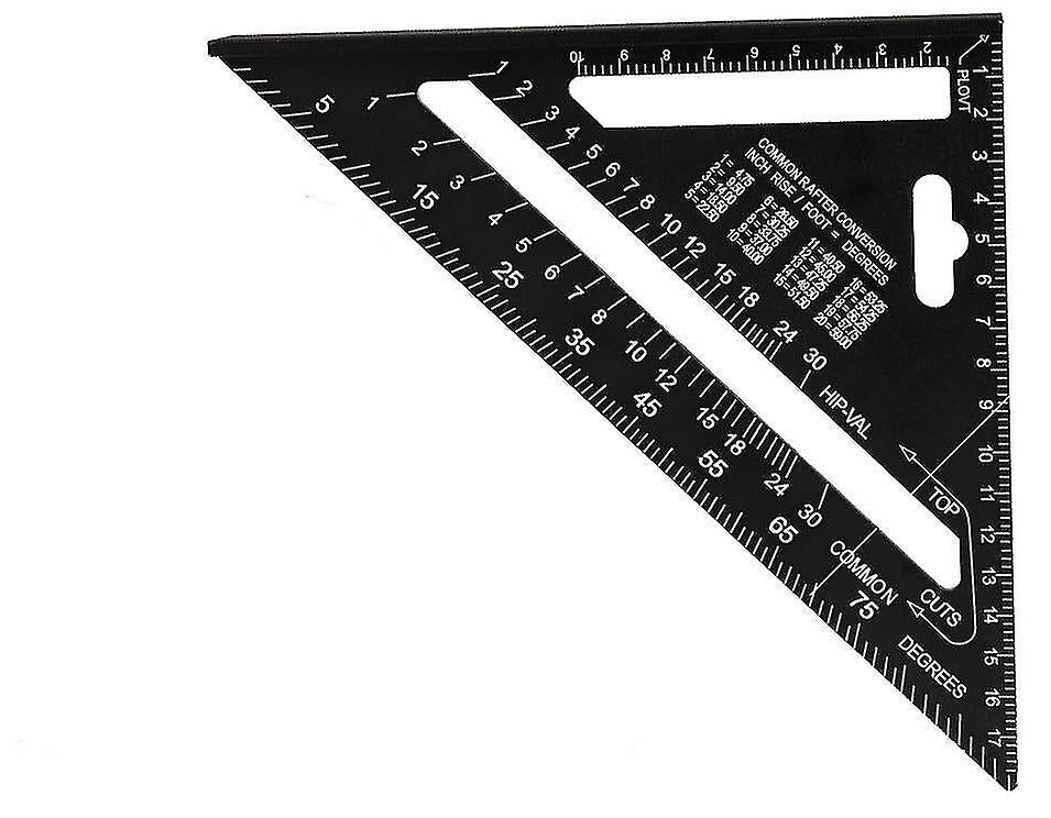 Triangle Ruler Angle Protractor-speed Metric Square Measuring Ruler. Features: Tri-Square, Meter Square, Protractor, Line Scriber & Saw Guide All In One Tool Suitable Tool For Framing, Roofing, Building & Remodeling Projects Lipped Edge For Secure Locating Manufactured From Strong Aluminium Metric System Measurement Specifications: Type: Triangle Ruler Material: Aluminum Alloy . Size: 7 inch,approx. 26x18.5x18.5cm12 inch,approx.30.5x30.5x43 cmNet Weight:190 /550Scope of Application: Woodworking/bulding Construction/industry Package Include: 1X Triangle Ruler .