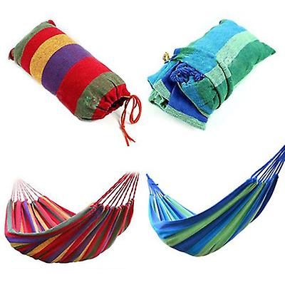 • Lade das Bild in den Galerie-Viewer, 185 * 80cm blue Portable single swing hammock outdoor garden home travel camping striped rainbow swing canvas hammock AZ12016