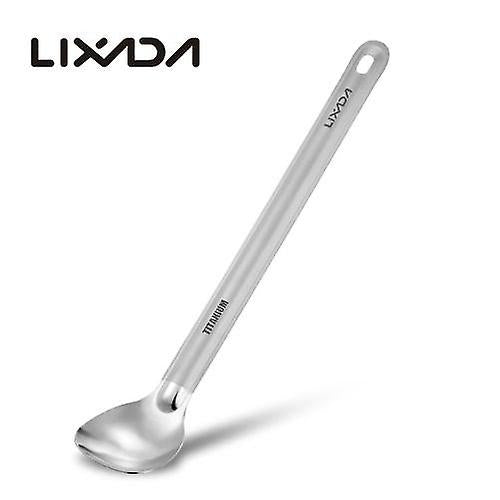 titanium spoon is lightweight and durable to use. It features a long handle and polished bowl, very convenient to use, great for home and outdoor use, such as camping, hiking, backpacking, picnic, barbecue, etc. Features: Lightweight, durable titanium construction. Features a long handle to reach the bottle corner easily. Polished bowl with flat head for smooth touch. A hole on the handle for convenient attachment to a key chain or carabiner. Come with a drawstring sack for easy carrying. Specifications: Material: Titanium Length: 215mm / 8.5in Weight: 16g / 0.6oz Package List: 1 * Titanium Spoon