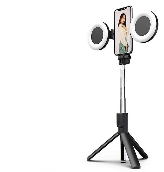 2 lights black Bluetooth Selfie Stick Led Ring Light Extendable Handheld Live Tripod AZ16470