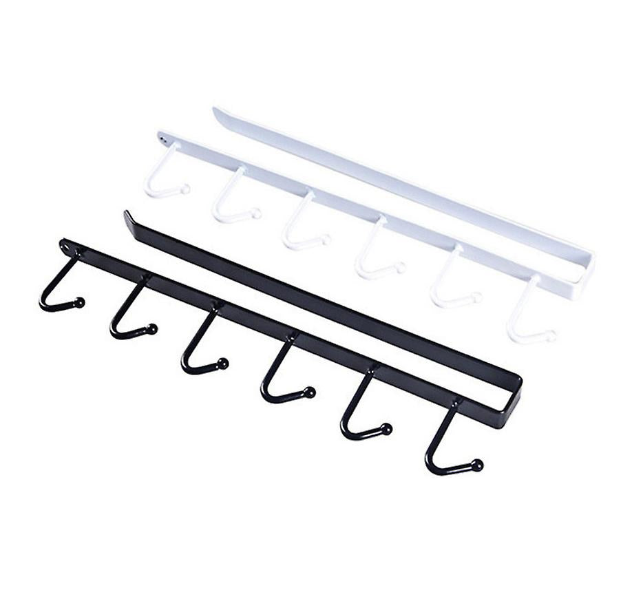 2 pcs white 6 Hooks Metal Under Shelf Mug Cup Cupboard Kitchen Organiser Hanging Rack Holder AZ19210