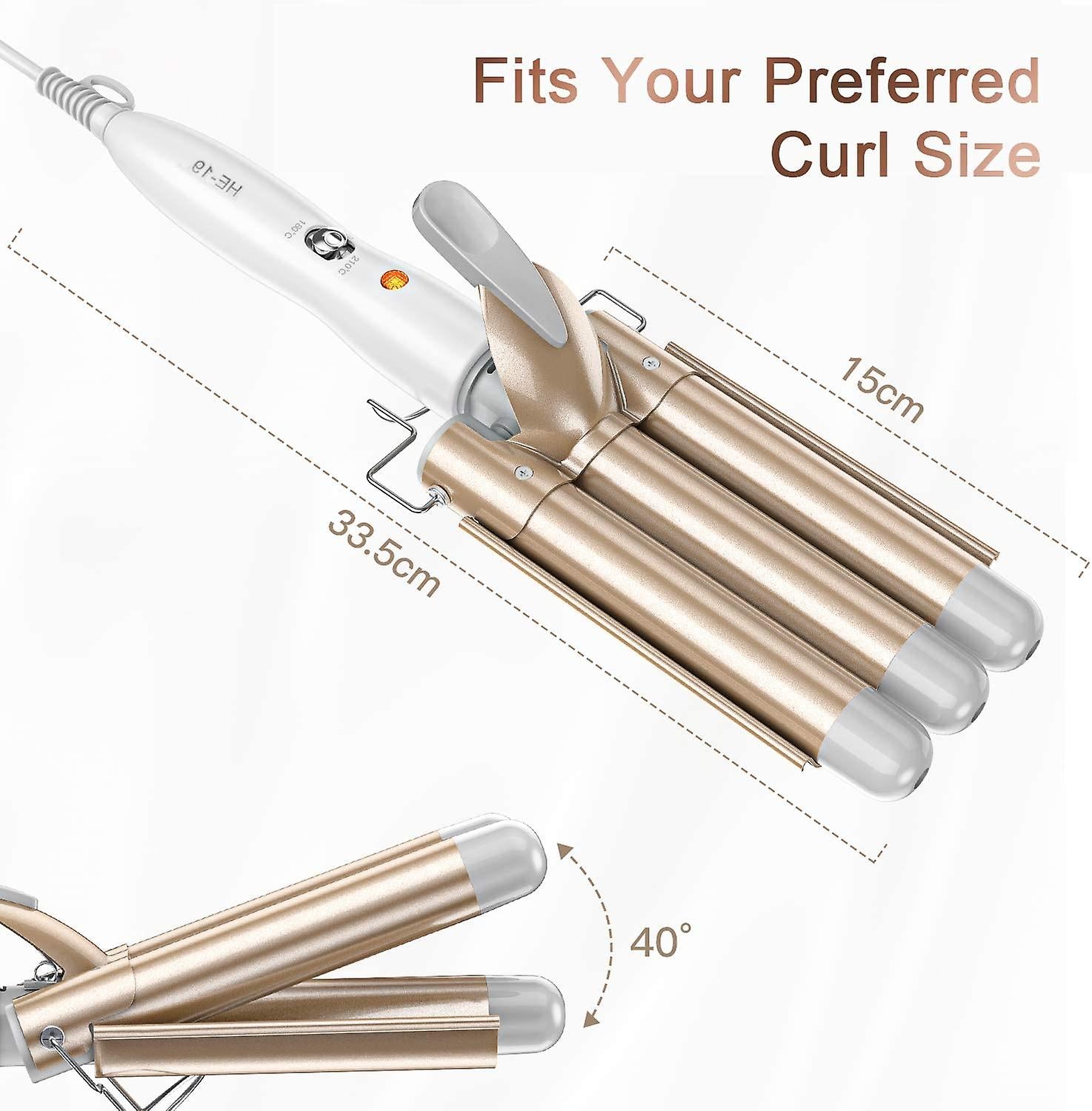 Thoughtful Design: BESTOPE 3 barrel hair waver adopting tourmaline ceramic technology, can release large amounts of negative ions, reducing the damage to the hair, making your hair more healthy, natural and hair shape more lasting. Suitable for all hair types, whether you have short or long locks; thick or thin, this 3 barrel curling iron easy to give you a fashion look in just few minutes.Two Temperature Settings: 180¡ãC (356¨H) and 210¡ãC (410¨H), allow you to choose correct temperature according to your hair. 180¡ãC, recommended for thin and soft hair; 210¡ãC, recommended for thick and hard hair. The best hairdressing tool for all occasions, suitable for curly hair on appointments, Valentine's Day, birthdays, parties, and weddings.Fast Hair Styling: 30s rapid heating, high efficient and time saving. Unique 25mm 3 barrel design hair curling tongs create beautiful "S"-shaped wide waves, work on all medium length to long hair and different colors of hair. Only to leave the hair for 2-7 seconds to form curls after the curling wand heat up. Don't leave hair in the splint for more than 30 seconds.Safe Protection: Designed with anti skid handle and anti scald top to to ensure your hands are not accidentally burned. The heat insulation front part bracket help to avoid hair curler contacting with the desktop directly. One button switch, safe and easy to use. 360 degree holding the hair curler tong any angle for the best effect.Ideal for Gift: The material of the hair crimper barrels is ceramic, harmless to your hair(No Burn Hair), keep your hair smooth, shiny forever. A fantastic gift for your wife, mother, girlfriend, or any other person who¡¯d appreciate salon-quality styling from the comfort of their home.Hair Curler Set For Fast Hair StylingThe biggest convenience of 3 barrel hair waver is 30% more hair volume can be rolled up each time, no matter whether your hair is thick or thin, long or short, all can be styling in a short time.Feature:3 barrel hair curling iron, fast & easy to operate, which can help you to create loose and large beautiful "S" waves for short or long hair.PTC heating element, 30s rapid heating.High-quality heater with curls function provides unmatched heat distribution.Release large amounts of negative ions and repair the damaged hair automatically, which can make your hair more healthy, natural and hair shape more lasting.How To Use the Hair Curling Wands?1. Dry your hair and brush your hair thoroughly, make sure there are no tangles.2. Choose the temperature you need, and heat up the curling iron after fixing the anti-scald holder.3. Divide hair into several pieces from the occipital area.4. Wrap a bunch of hair around the barrel, and holds the anti-scald head to PRESS them tightly, hold for few seconds. Then pull the curling iron out from the center of the curl.Tips:1. For thick hair, you need to choose less hair every time.2. When all hair styling is complete, Do not touch the heating part immediately. And turn off the power in time and allow the curling iron to cool .3. Don't leave hair in the splint for more than 30 seconds.Notice:Avoid touching the skin on the neck or face.Keep away from children, do not clean with water.Keep the curler closed for 30 seconds at most so that you do not damage the hair.