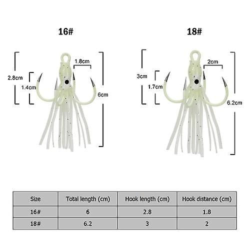 Features: 3D eyes and lifelike waving tenacles. Noctilucent body glows in the dark to attract fish. Sharp barbless four-claw hooks for higher hookup ratio. Ideal for both freshwater and saltwater fishing.