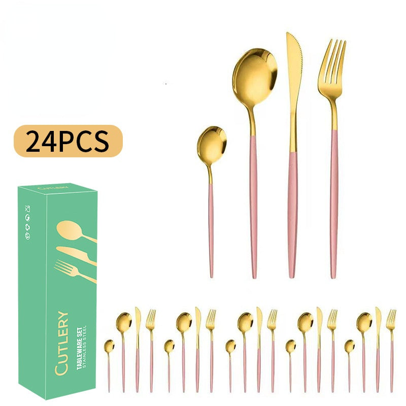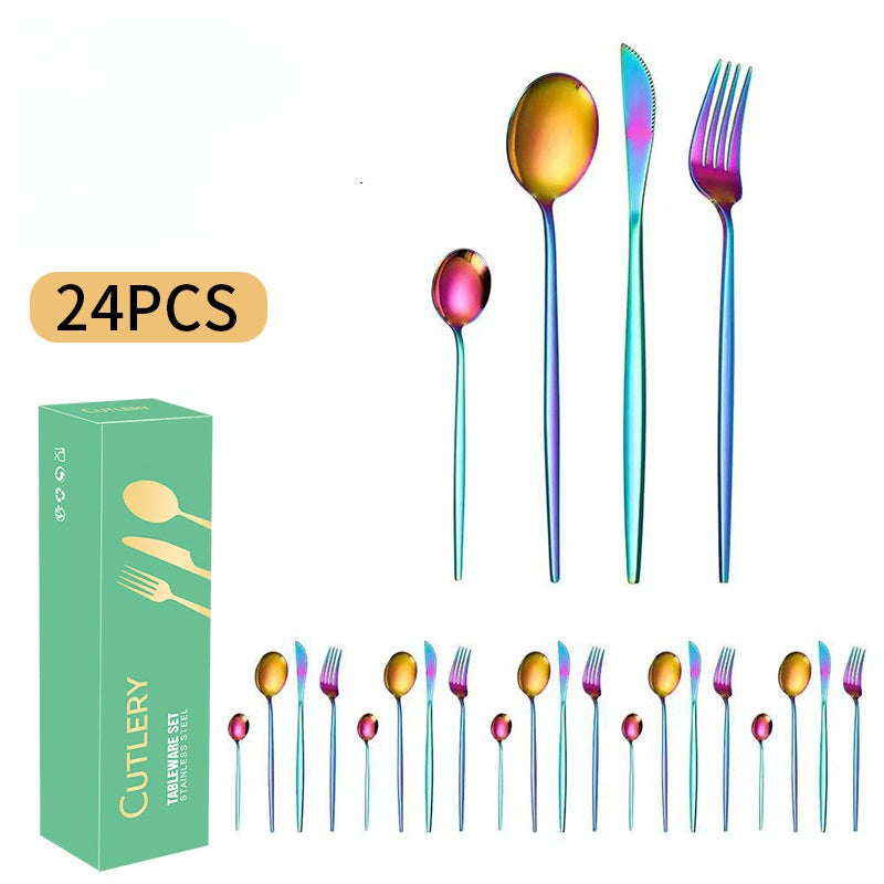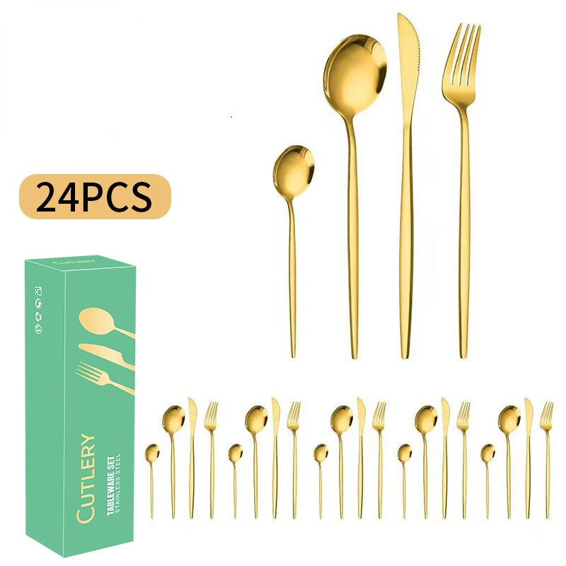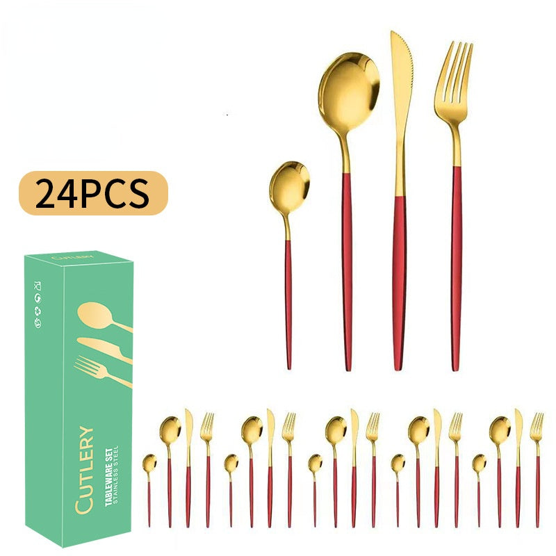 304 Stainless Steel Flatware Sets 6 People Western Food/Steak Knife, Fork and Spoon Gift Set