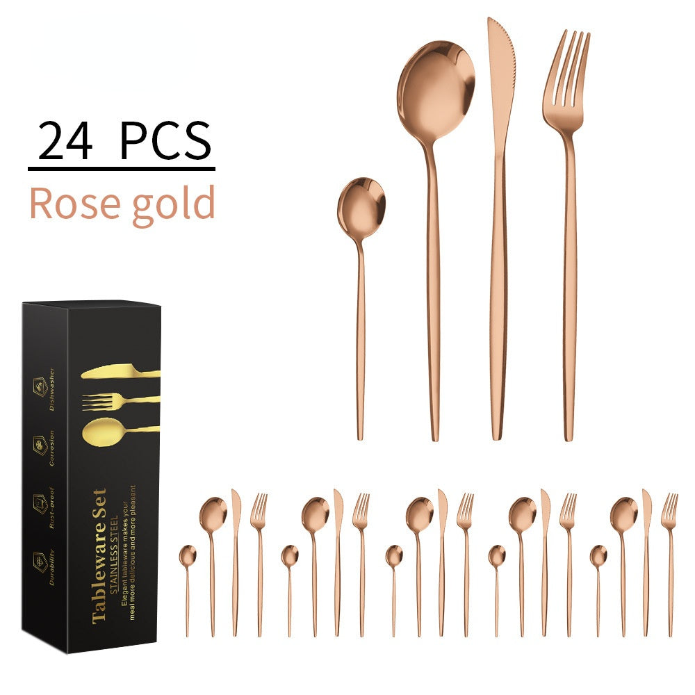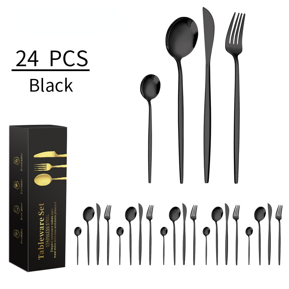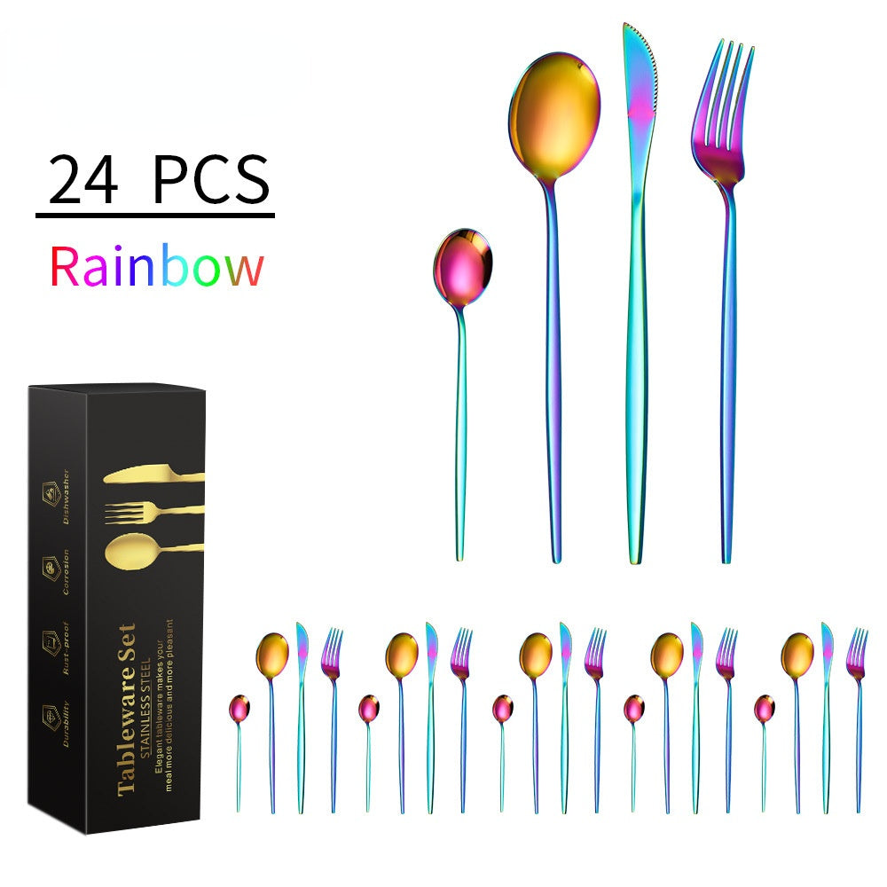 304 Stainless Steel Flatware Sets Knife, Fork and Spoon 4-Piece Set Multi-Color Optional 24-Piece Set