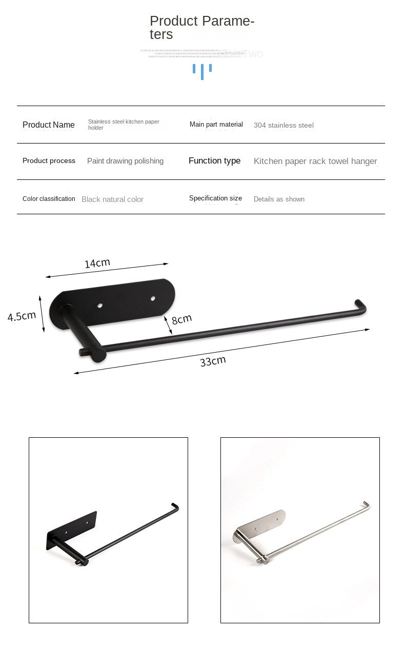 Wide application: paper towel holder is ideally installed on the side of a sink or cabinet. In addition, our paper towel holder wall mount can be used to place towels, paper towel rolls, and plastic wrap. It can be installed in cabinets, kitchens, bathrooms,
