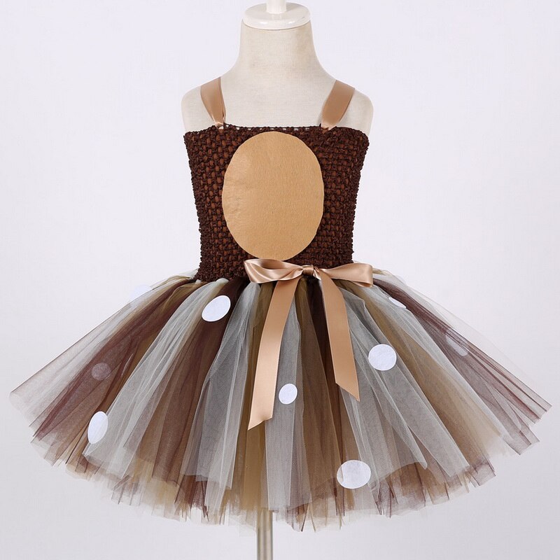 2-8 Years Little Girls Eve Xmas Dress up Party Dresses Kids Deer Animal Tutu Dress with Headband