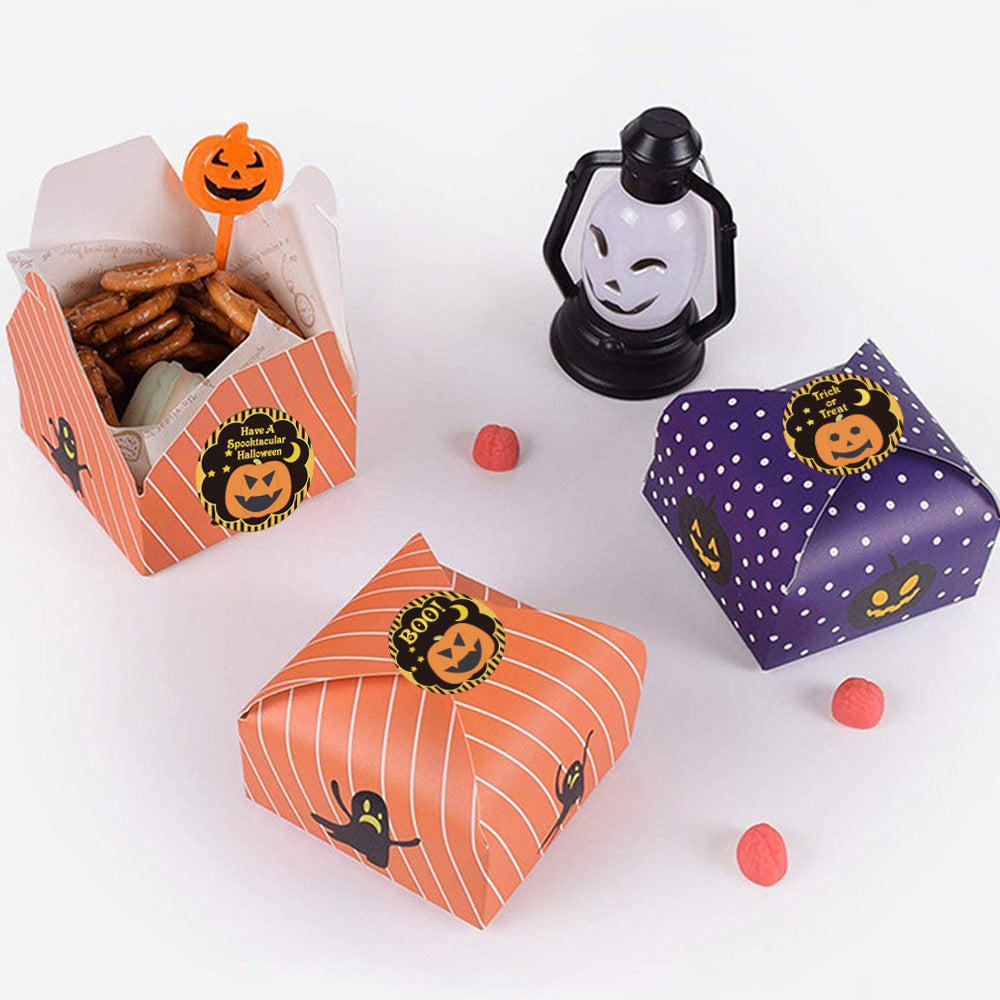 2 Rolls 1000pcs Halloween Pumpkin Expression Sticker Adhesive Gift Sealing Paste