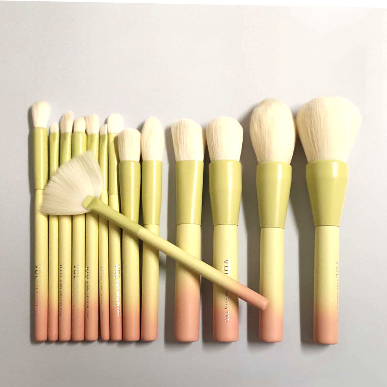 14 PCs Makeup Brushes White Imitation Wool Gradient Color Handle Pu Bag