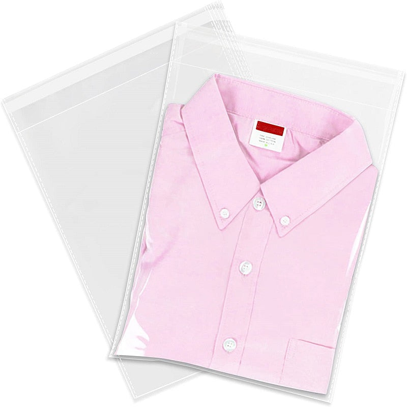 100 Pack Poly Transparent Bag Opp Self Adhesive Plastic Bag for T Shirt, Clothes Packaging Clear Storage Bag