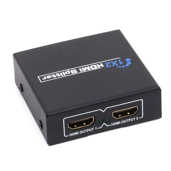 Model: HDMI HD Splitter One in TwoApplication: output the device data source with HDMI interface, such as: PC computer, set-top box, DVD player, notebook, PS3, high-definition TV and other HDMI devicesMaterial quality: use high-quality paint tin boxProduct features: fashionable design, exquisite and compact, easy to carry.Advantages: It has signal buffering and amplification capabilities, supports high-definition video, high-quality, clear, HDTV resolution up to 1080p, fully supports HDMI 1.3, supports 3D, supports CEC, and is fully compatible with HDCP1.2Working principle: One HDMI signal input is distributed into two HDMI outputsApplicable: Assign one HDMI output device to two high-definition display devices with HDMI interfaces. For example: the user can output the signal and connect to the high-definition projector, DLP, LCD, high-definition TV series and other equipment at the same timeHDMI resolution 24/50/60fs/1080P/1080i/720p/576p/576i/480P/480i/4KFeatures & advantages:1. With signal buffering and amplification capabilities 2. Long-distance transmission of more than 15 meters (extended) can be achieved through serial connection3. By stacking, the number of HDMI output ports can be significantly increased4. Support high-definition video, high-quality, clear, HDTV resolution up to 1080p/4K*2K5. Easily connect to multi-channel audio receiving equipment6. Fully support HDMI 1.3, support 3D support CEC, fully compatible with HDCP1.27. Quick installation and simple operation8. The vertical pixels of the output image can reach up to 1080 lines, in line with HDMI1.3/1.4 standards, and compatible with HDCP protocolAccessories: One HDMI splitter, one manual, one power adapter, one color box.Picture quality performance:Support 30/36 bit deep color, support signal timing repetitionSupport Blu-ray DVD24/50/60fs/HD-DVD/xvYccSupport 480p, 576p, 720p, 1080i, 1080p, 4K*2K resolutionAudio format: DTS-HD/Dolby-trueHD/LPCM7.1/DTS/DOLBY-AC3/DSDProduct parameters;1. Video amplifier bandwidth: 2.5 Gbps2. Input video signal level: 1.2 volts p-p3. Input DDC signal level: 5 volts p-p (TTL)4. Single connection signal range: 1080p/1920x12005. HDMI connector: Type A, 19-pin female6. Video output: DVI-I 25-pin female (pure digital)7. Power supply: 5V DC 110V-240V, 50HZ8. Power consumption: 5 watts (maximum)