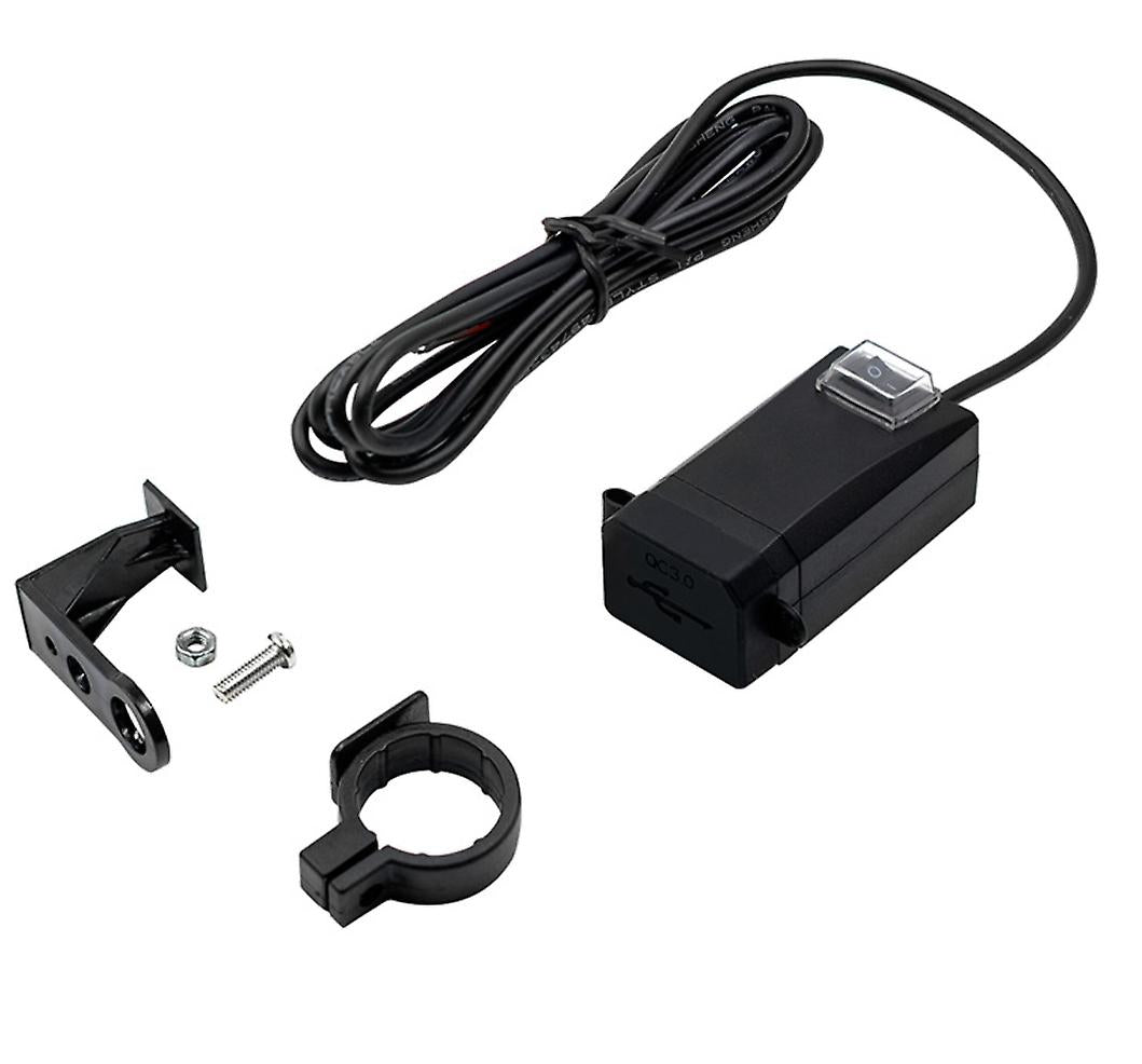 [Product Usage]: It can be used to power most car-mounted products such as mobile phones, tablets, IPAD, navigation and GPS.[Scope of use]: It can be installed on motorcycles, ATVs, sleds and other transp0rtation tools.[Product features]: There are multiple protection functions: input over-voltage, under-voltage protection; output over-current, over-voltage, under-voltage, short-circuit protection; reverse connection protection; inside the chipHigh temperature protection.¡¾Product advantages¡¿:¡¾1¡¿It can be installed on motorcycles, ATVs, sleds and other transp0rtation tools.[2] ABS material, heat-resistant, corrosion-resistant, and flame-retardant, with a very high insurance factor.¡¾3¡¿Black shell, plus fine workmanshlp, the whole product looks heroic and majestic[4] Built-in power MOS, output voltage cable compensation function, output with CV/CC characteristics (output current is less than the set value, output CV mode;The output current is greater than the set value, output CC mode), the upper limit of conversion efficiency is 97%, soft start function[5] Multiple protections, high reliability, output over current, input over voltage, input under voltage, output short circuit protection, over temperature protection of the whole machine, ESD 4KV DC withstand voltage 24V[Product size]: Product head: 2.95CM long and 2.24CM wide, total body length 5.88CM[Required handlebar diameter]: 2.2CM[Product material]: ABS material, nylon bracket[Product color]: black[Input voltage]: DC12V-24V[Normal output]: 5V/2.4V[Quick charge output]: 4V/3.6; 5V/3.4A; 9V/2.5A; 12V/2A[Maximum power]: 24W[DC withstand voltage]: 24V[Product bus length]: 110CM[USB number]: Two are QC 3.0 fast charging[Working temperature]: the lower limit is -20¡æ, the upper limit is 80¡æ[Waterproof rating]: IP65[Product accessories]: One mirror holder bracket and one handlebar bracket are delivered