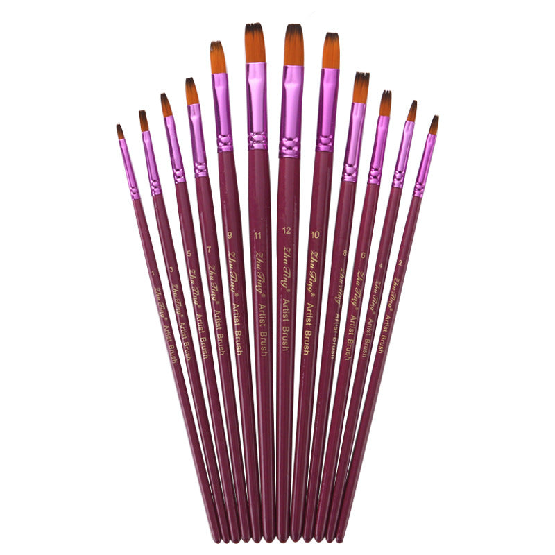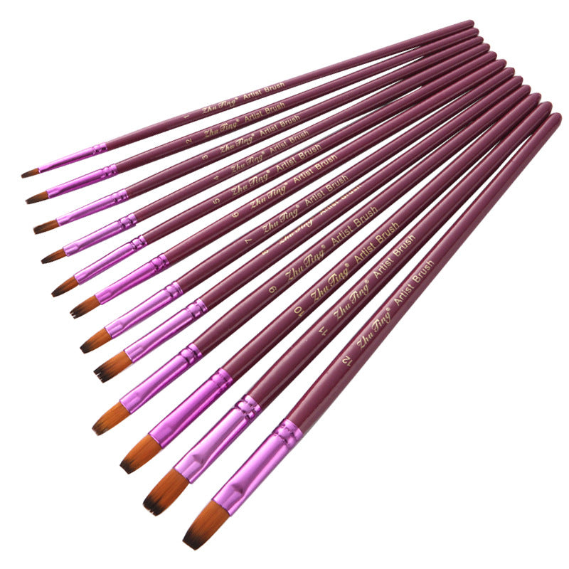 12 PCs Double Color Nylon Hair Purple Rod Gouache Watercolor Painting Pen Set